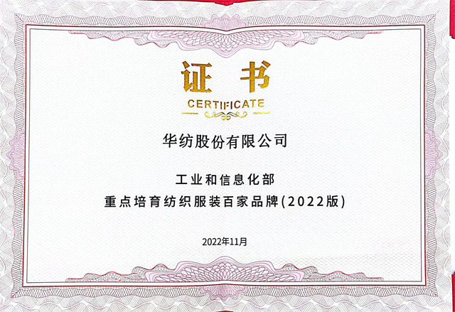 近日,由中國紡織工業(yè)聯(lián)合會、湖州市吳興區(qū)人民政府聯(lián)合主辦,以“新變革下的品牌價值提升”為主題的中國紡織服裝品牌大會在浙江湖州召開。大會期間,工信部發(fā)布“重點培育紡織服裝百家品牌名單(2022版)”名單,華紡股份有限公司入選。
