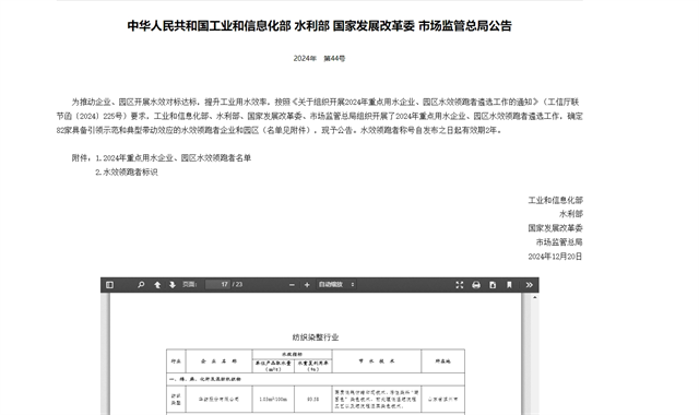 導(dǎo)讀:日前,國(guó)家工信部、水利部、發(fā)展改革委、市場(chǎng)監(jiān)管總局等四部門(mén)聯(lián)合公示了“2024年重點(diǎn)用水企業(yè)、園區(qū)水效領(lǐng)跑者名單”,公司成功入選國(guó)家級(jí)重點(diǎn)企業(yè)水效領(lǐng)跑者