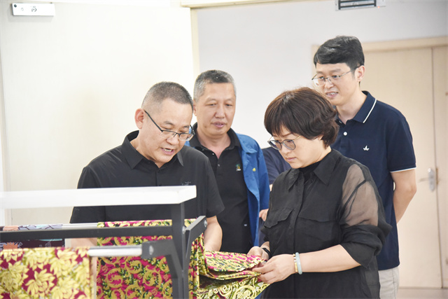 5月28日,由中國紡織行業(yè)創(chuàng)意與協(xié)同設(shè)計重點(diǎn)實(shí)驗(yàn)室主任李斌紅、中國紡聯(lián)生產(chǎn)力促進(jìn)部副主任、中國紡織信息中心產(chǎn)品開發(fā)部主任陳小麗帶隊(duì)的“紡織行業(yè)產(chǎn)品開發(fā)創(chuàng)新秘書處調(diào)研專家組”到公司進(jìn)行考察調(diào)研。公司黨委書記、董事長盛守祥,副總經(jīng)理王超,技術(shù)總監(jiān)、工程技術(shù)研究院院長孫紅玉陪同調(diào)研。