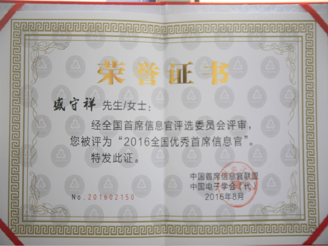 導(dǎo)讀:日前,中國(guó)首席信息官聯(lián)盟、中國(guó)電子學(xué)會(huì)對(duì)2016年度全國(guó)優(yōu)秀首席信息官評(píng)審結(jié)果進(jìn)行了表彰,公司副總經(jīng)理盛守祥以在推進(jìn)數(shù)字華紡智慧華紡建設(shè)方面的卓異業(yè)績(jī),獲得這一殊榮。