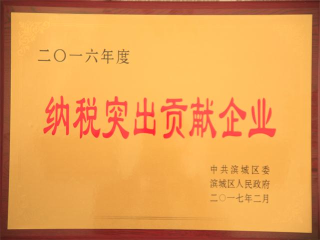 導(dǎo)讀:日前,中共濱城區(qū)委、濱城區(qū)政府公開表彰了濱城區(qū)2016年度納稅貢獻(xiàn)企業(yè)(單位)。公司以在守法經(jīng)營、推進(jìn)發(fā)展、依法納稅等方面的良好表現(xiàn),被授予“2016年度納稅突出貢獻(xiàn)企業(yè)”稱